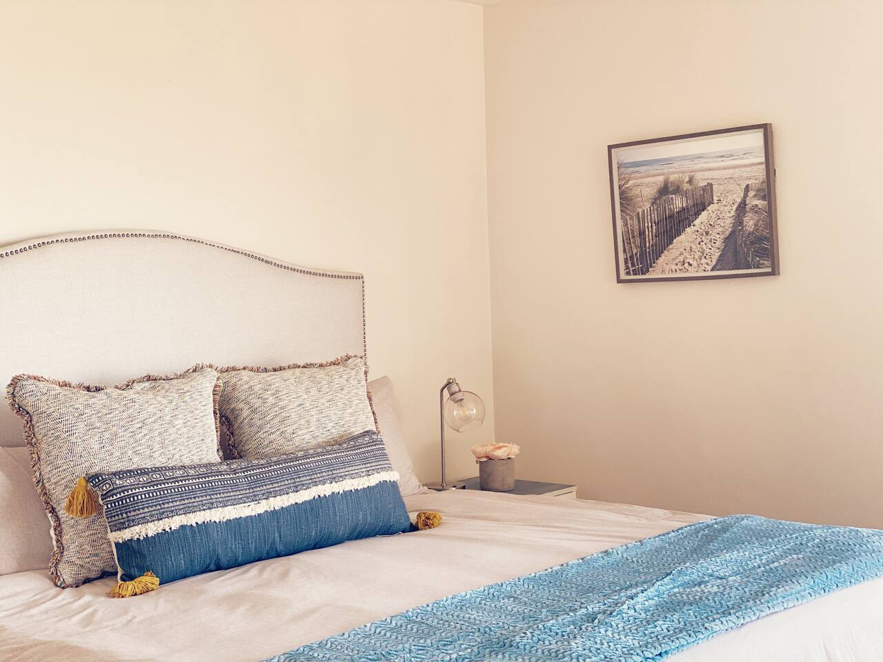Bedroom 1 : king sized bed - ocean view Bedroom 2 : queen sized bed - garden view Bedroom 3 : queen sized bed - walk-in closet - door connected to the 2nd bathroom - ocean view Family room : Daybed (two twin sized beds ) - Desk - Smart TV Living room : couch - queen air mattress if needed - Dining area