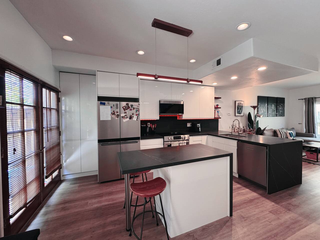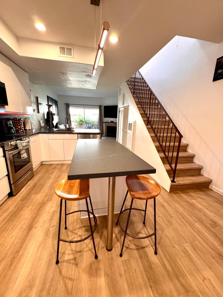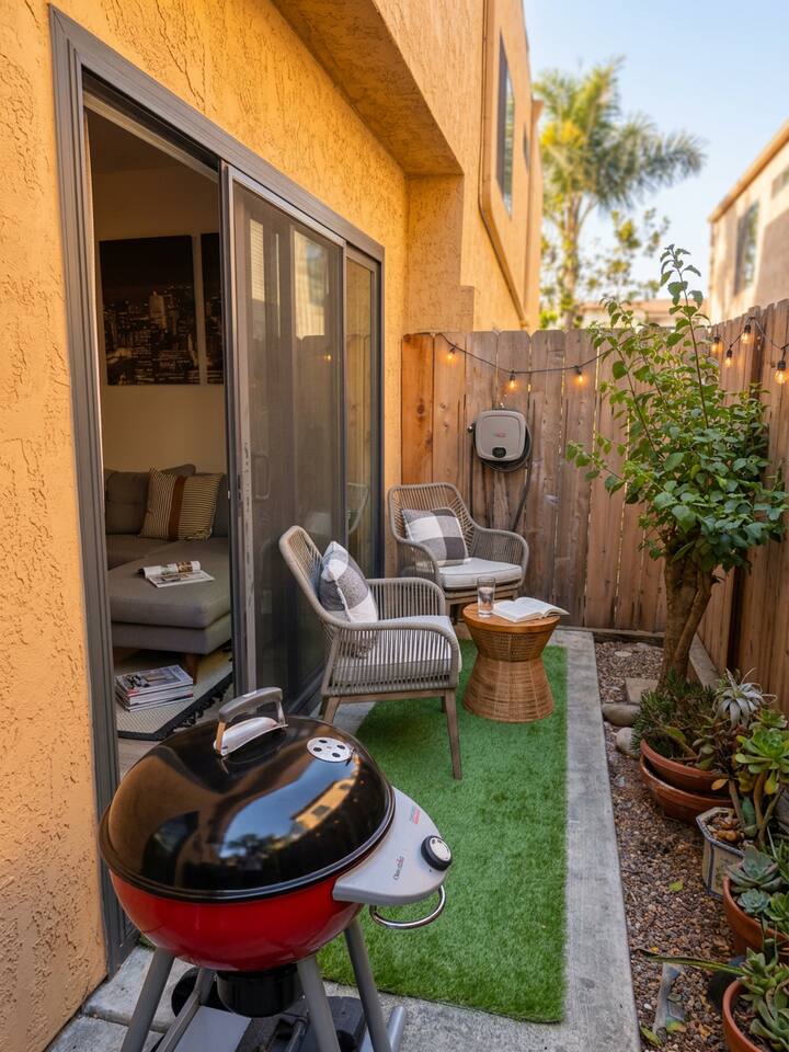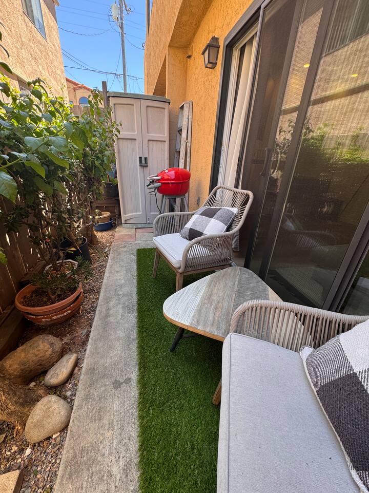 Modern 2BR/2BA North Park Condo | 2-Story Layout, Patio & Office Setup Welcome to this stylishly renovated 2-bedroom, 2-bathroom condo in the heart of North Park. Spread across two levels, this inviting home features all new windows, upgraded closets, and thoughtful touches throughout. Downstairs, enjoy an open-concept layout with a modern kitchen, cozy living area, and a private patio complete with a BBQ grill—perfect for relaxing or entertaining. Upstairs, both bedrooms offer generous space and wall-to-wall closets. One is set up as a functional home office with a futon, ideal for working remotely or hosting guests. A skylight in the hallway brings in beautiful natural light. Additional perks include in-unit washer & dryer, central AC and heat, and one reserved parking space. A great home base for exploring San Diego while enjoying modern comfort.
