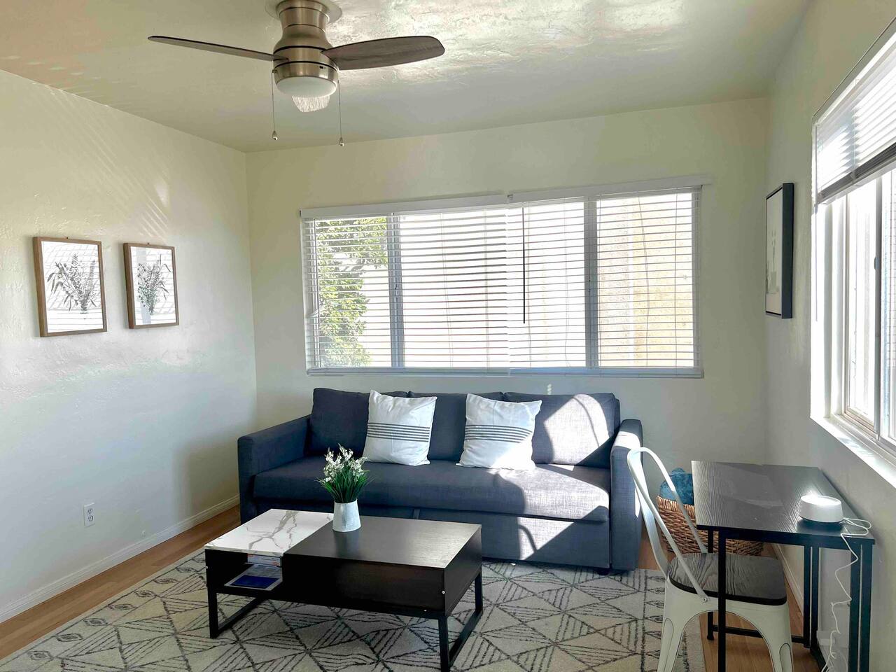 - The unit is facing the freeway so there will be some traffic noise if you are sensitive to noise - NO AC - only ceiling fans - We provide Reusable Paper Towels only - For safety, we only provide Clothing Steamer - Street Parking ONLY - Pull-out couch