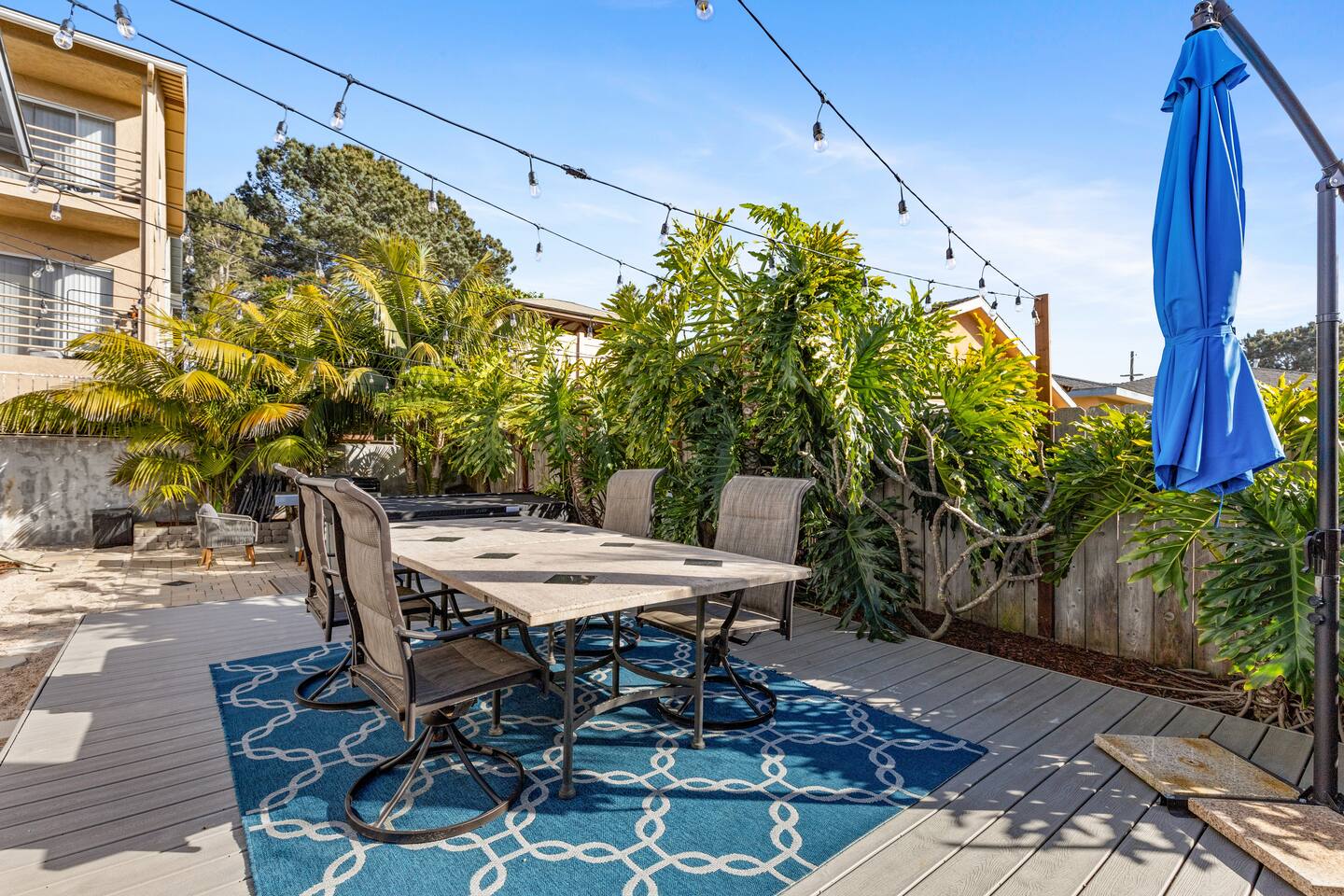 oise: This home is located in the heart of Point Loma and falls within the airport flight path. You may hear airplane noise outdoors between 6:30 AM and 11:30 PM. Indoors, with doors and windows closed, the noise is typically minimal. If you’re sensitive to sound and prefer to keep windows open, this location may not be the best fit. For added comfort, we’ve provided disposable earplugs in the kitchen for your use. Paper Towels: In our commitment to being eco-friendly, we encourage all guests to use the reusable microfiber towels provided instead of paper towels. SHARED BBQ Grill: The backyard is a shared space with another unit in the building. You’re welcome to use the BBQ grill – it’s available on a first-come, first-served basis. Shared Hot Tub: Please note that the backyard and hot tub are shared with another unit in the complex. The hot tub is available on a first-come, first-served basis. Parking: This unit has two reserved parking spaces (2 small cars or 1 big car). Please ensure you park in the spots designated for Unit D. NEED BIGGER SPACE? We also have another 3-bedroom, 3-bath unit available in the same building. If your group needs extra space, feel free to let me know—it's perfect for large families or friends who want to stay close to each other.