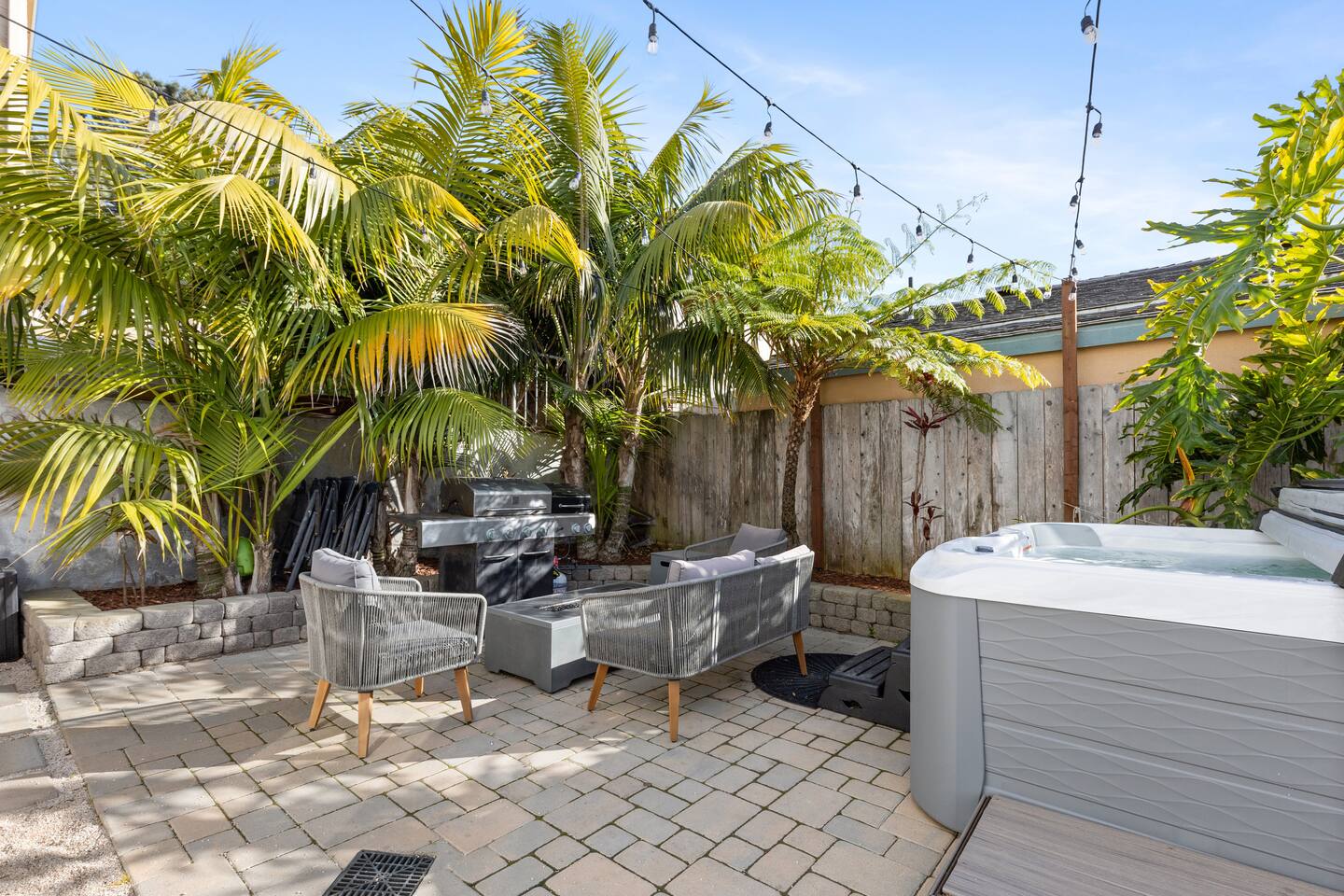 Entire unit #D + Private patio 2 reserved parking spots for unit #D Shared Backyard with BBQ grill & Hot Tub