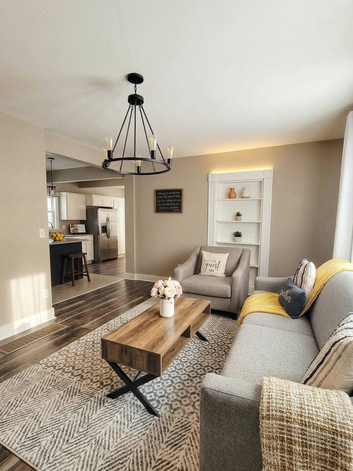Escape to our two-level cottage just 5 minutes from Downtown Des Moines, offering stylish furnishings and plenty of extra beds for large groups. Enjoy skylight views, two private decks, and fenced-in yard, perfect for privacy and dog-friendly fun. Plus, with two parking spots, city exploration is a breeze. Book your stay today!